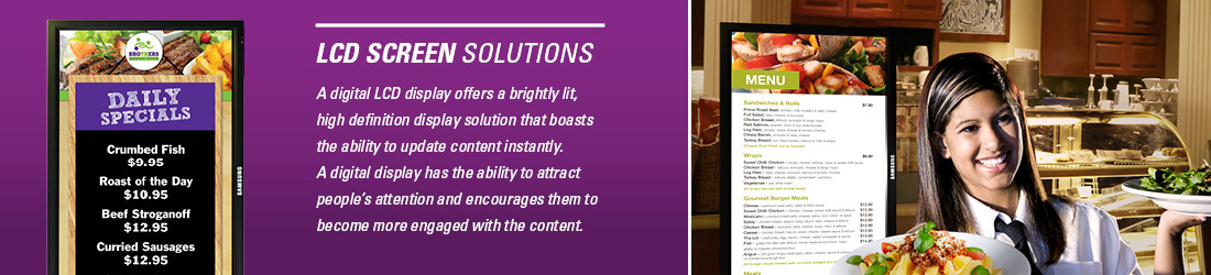 Paper menus and displays are static. A digital display offers a brightly lit, high definition display that attracts guests to become engaged with the content on the screen. They can read menu items, see images of food items change before their eyes and view much more than a printed item could show. You can even have advertising running on a different section of the screen.
